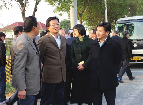 【市农林水联动工作推进会在叶榭召开】 11月24日下午,上海市2016年农林水联动工作推进会在叶榭镇召开。会前,副市长时光辉察看了叶榭镇南泖泾河道整治、八字桥村美丽乡村河道整治及井凌桥村都市现代农业示范项目。 (朱羽萍/摄 2016年11月24日)
